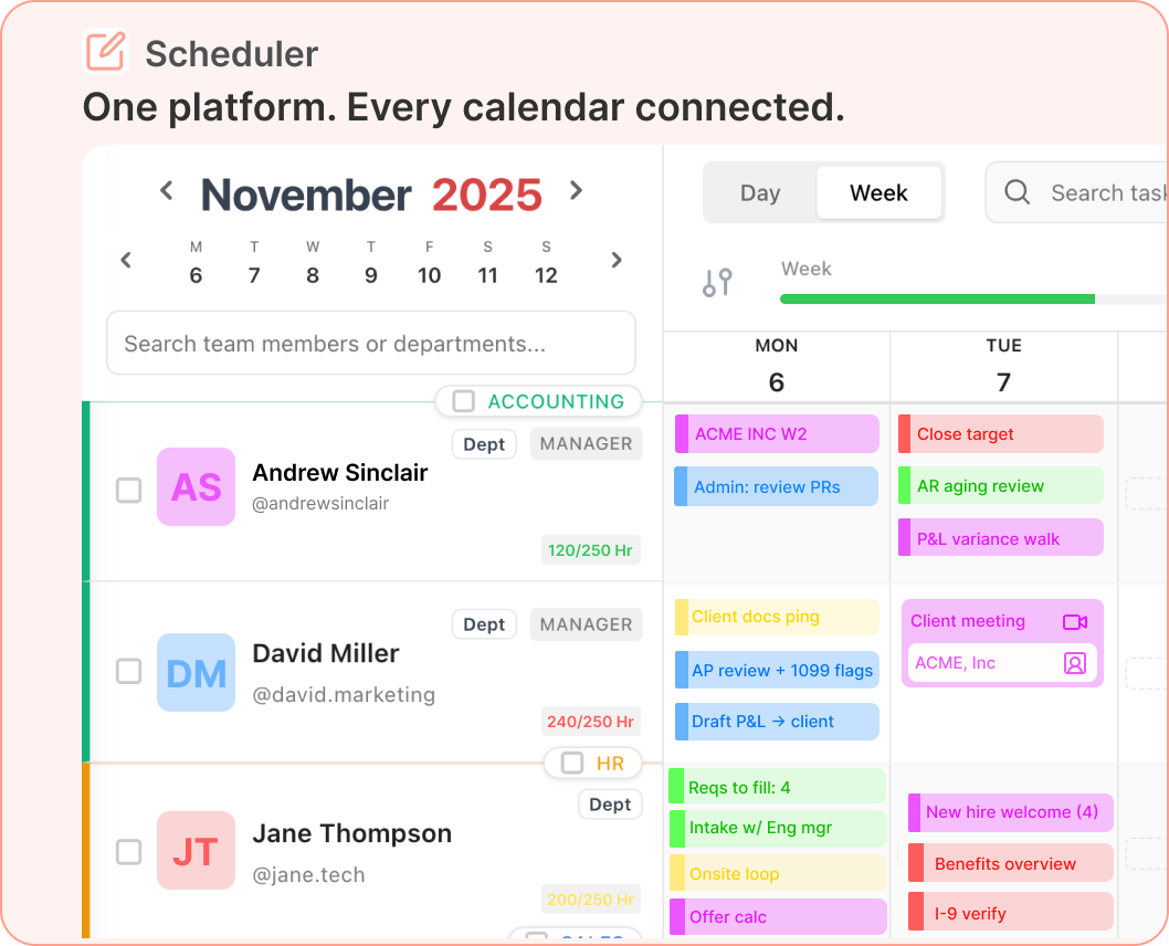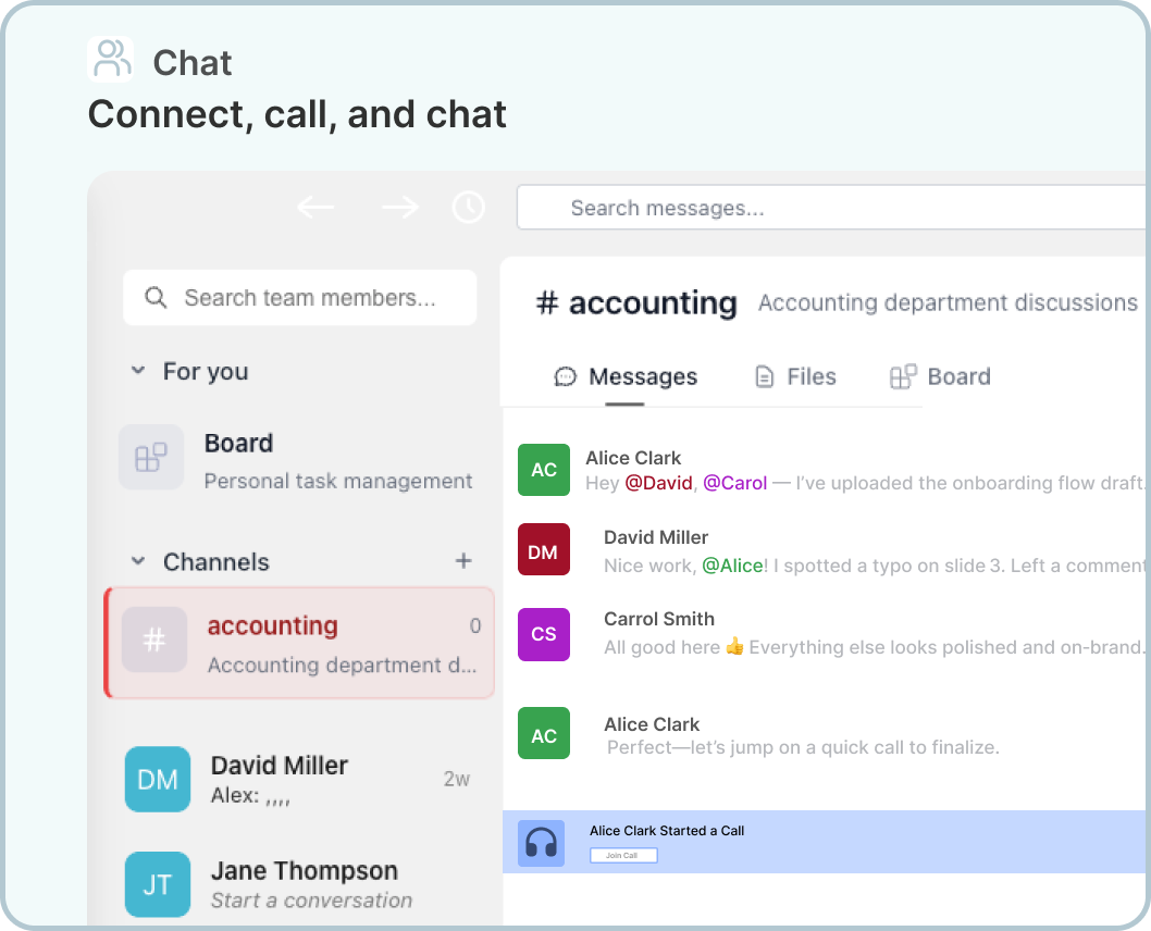 Sync schedules, keep email and chat together, and track hours/projects from a single manager dashboard.